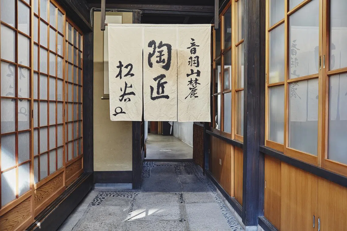 The noren traditional Japanese curtain at the entrance of Kano Shokoku’s studio in Kyoto.