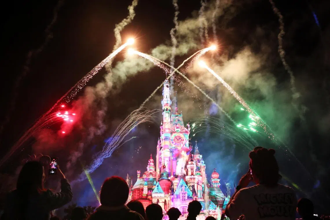Fireworks lighting up the sky over Hong Kong Disneyland as crowds return to the theme park.