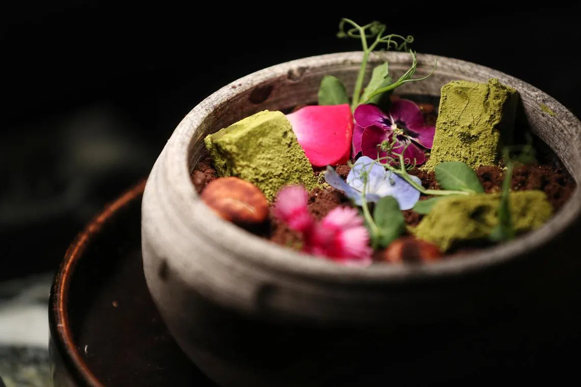 Most beguiling of all is the tea-smoked chicken. Each locally raised chicken weighs “2 catty and 12 taels”, according to the menu notes. The bird goes into Chef Saito Chau’s customised air-drying cabinet that replicates the weather of northern China, and is then smoked with osmanthus and oolong tea leaves.