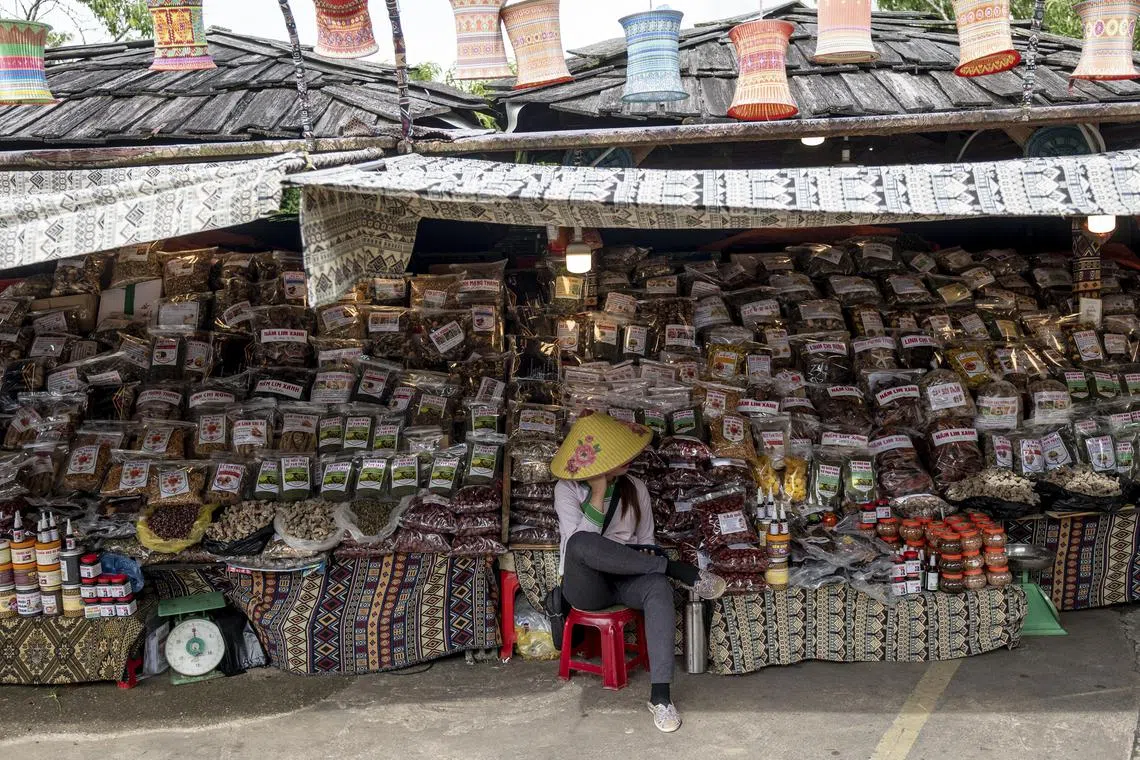 Vendors sell local food and souvenirs at the base of Sun World’s Fansipan Legend cable car line in Sa Pa.
