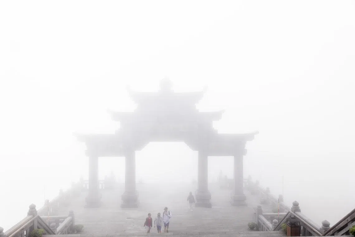 The fog-shrouded summit of Fansipan Mountain, the highest peak in the Indo-Chinese Peninsula, where Sun Group inaugurated a Buddhist-themed complex in 2018.