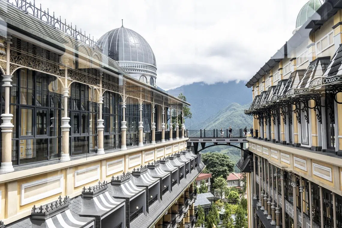The Hotel de la Coupole, one of several luxury hotels famed architect and designer Bill Bensley has built for Sun Group, at the start of the Fansipan Legend cable car system in central Sa Pa, Vietnam.