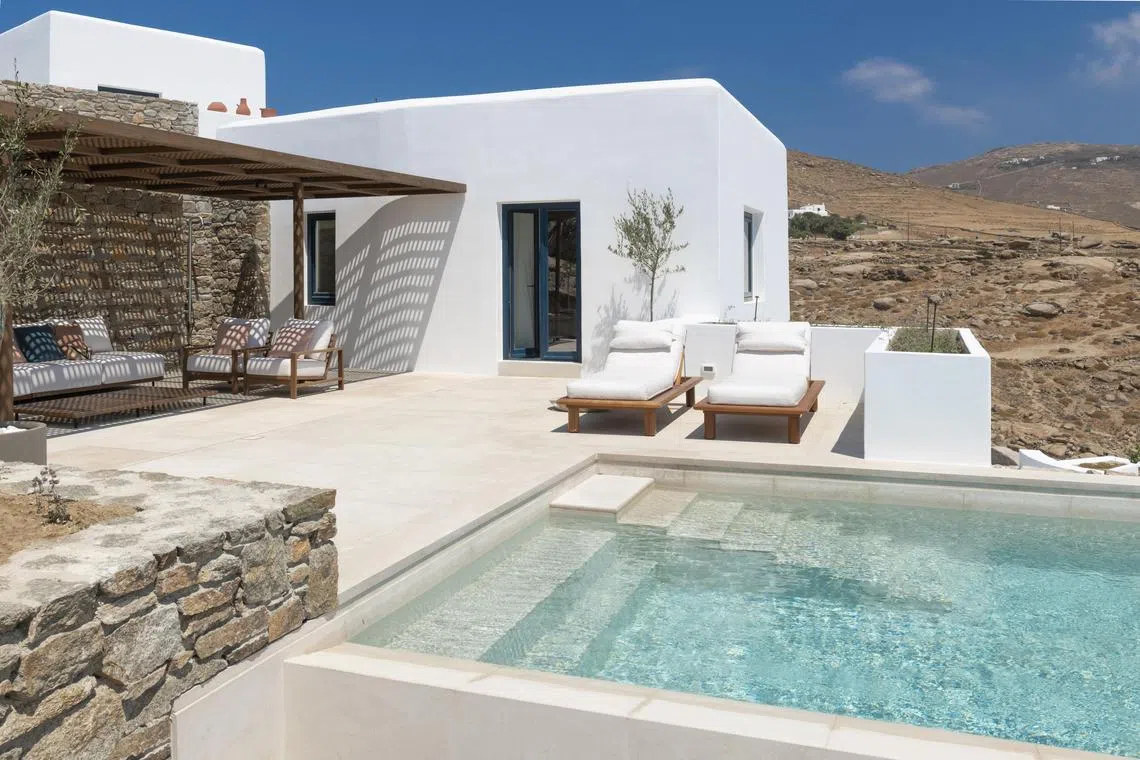 Hotel Cali in Mykonos. As a proliferation of pools threatens water supply and housing costs skyrocket, people of the Cycladic islands say the Aegean islands’ character is being lost to real-estate homogenisation.
