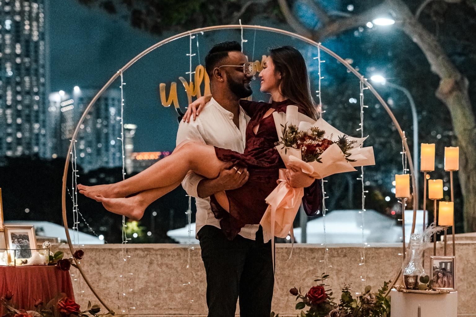 Mr Hemandra Tanapalan, proposed to his girlfriend, Ms Cheryl Chua, at The Fullerton Hotel Singapore in Jan 2021.