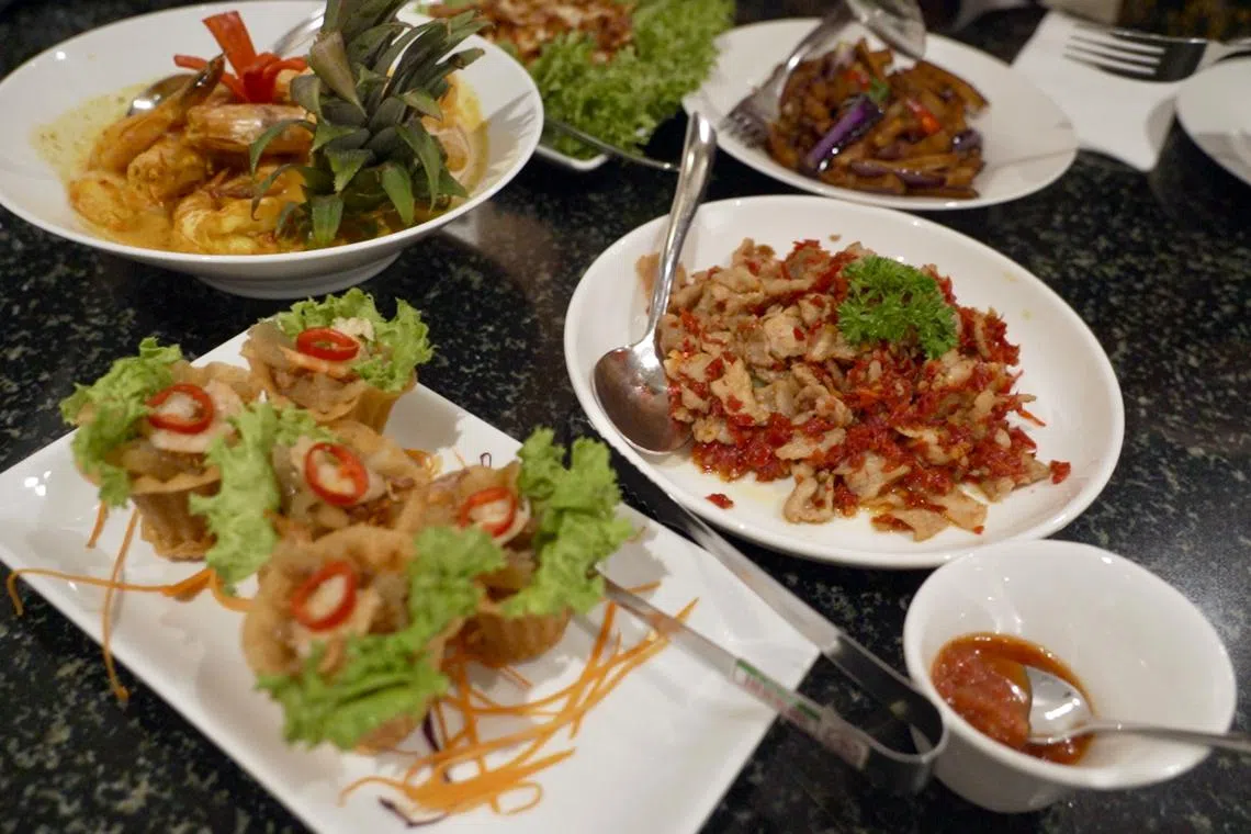 His selection is spot-on. Get the chilli garam pork (RM28), sambal sotong (RM35), eggplant with shrimp paste (RM18), assam fish (RM85) and pai tee (RM15) – you will not be disappointed. Our meal for four, including tea and dessert, comes to $87, a steal for the quality and setting.