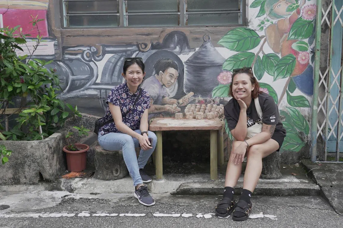 (From left) Travel correspondent Clara Lock from The Straits Times and content creator Nicole Chen discover hidden gems such as street art in Muar.
