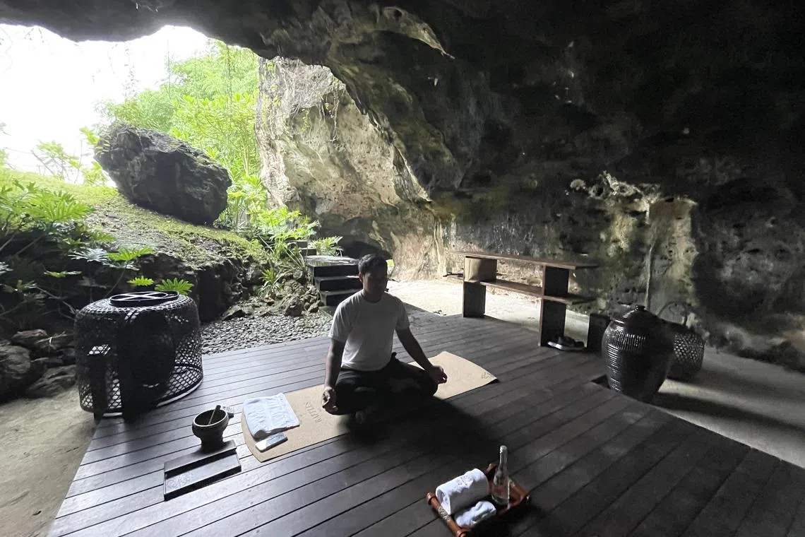 I also plan a morning meditation session the next day, but when I wake up, it is drizzling. However, a quick text to Ms Ariyanti confirms that it is still on and a buggy arrives at my villa on the dot to transport me to The Secret Cave location.