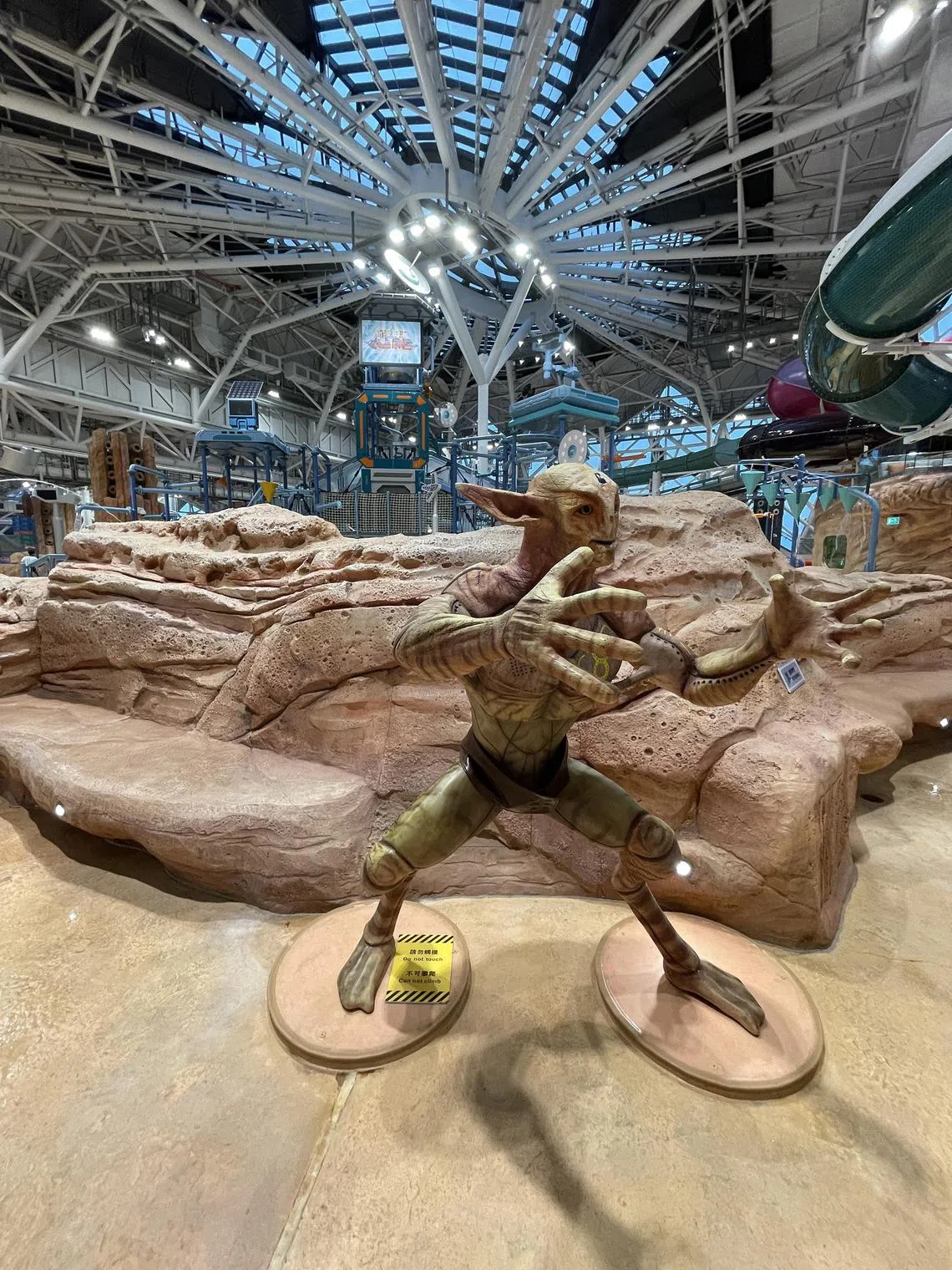 The indoor water park in Studio City is decorated with figures of alien creatures.