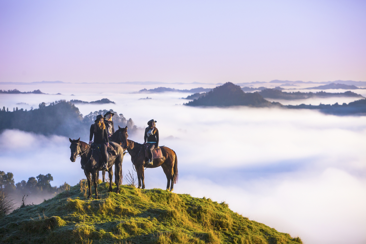 Go horse-trekking and watch the sunrise at Blue Duck Station in the Ruapehu District in New Zealand.