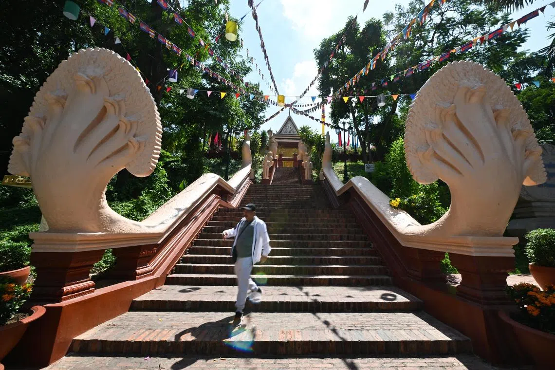 Wat Phnom in Phnom Penh. Cambodia Airways flies between the Cambodian capital and Singapore five times weekly.