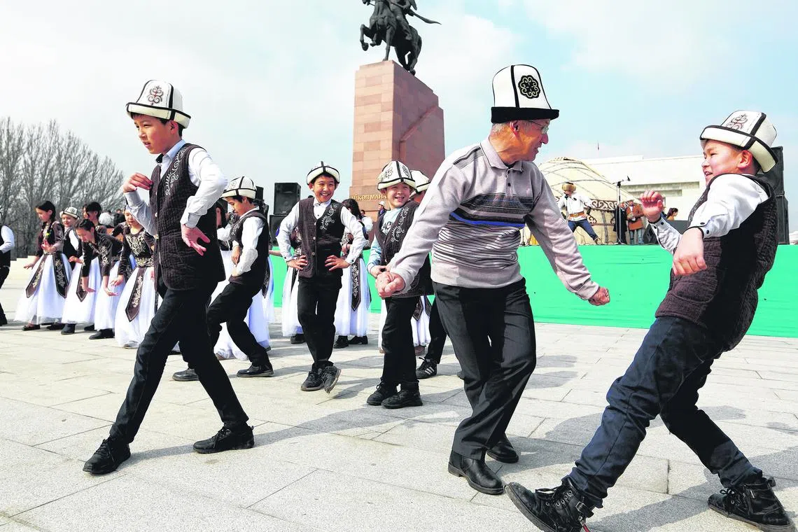 Kyrgyz people celebrating National Flag and White Kalpak Day in central Bishkek, Kyrgyzstan, in March 2019. T’way Air operates flights to Bishkek from Seoul.