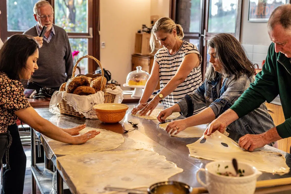 On the final afternoon, we are clustered around the Stonebarn kitchen bench with former MasterChef Australia contestant Samira Damirova. It is not merely a cooking demonstration and, before I know it, my knuckles are deep in buttery dough. I am laughing with Ms Damirova, while trying to emulate her lamb-filled Turkish bread.
