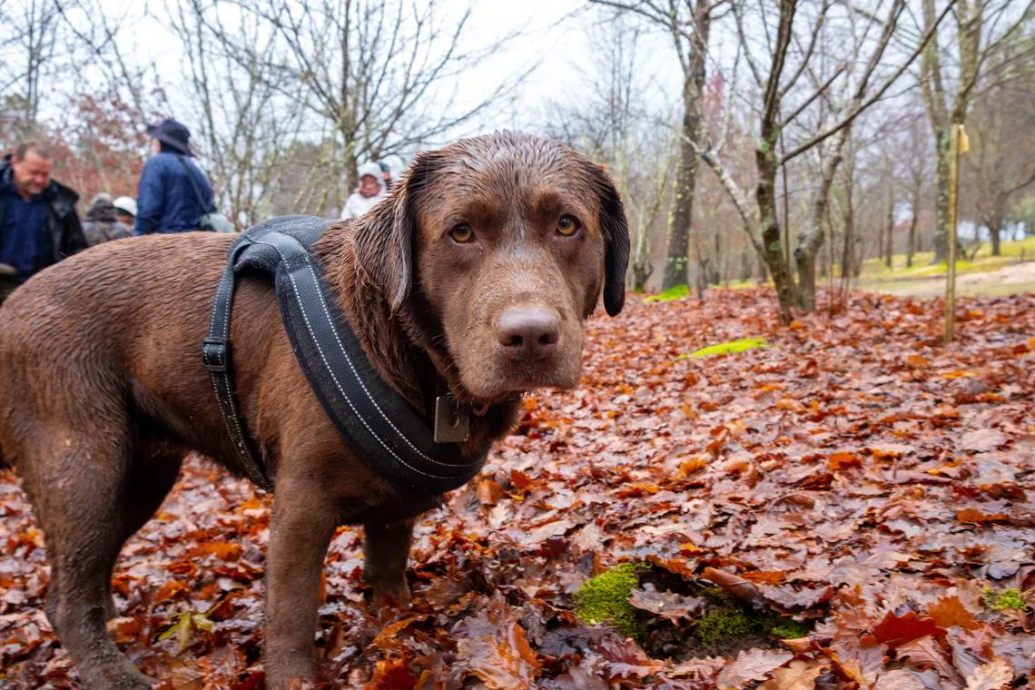 Hazel, the chocolate labrador, is in charge of finding the black Perigord truffle.