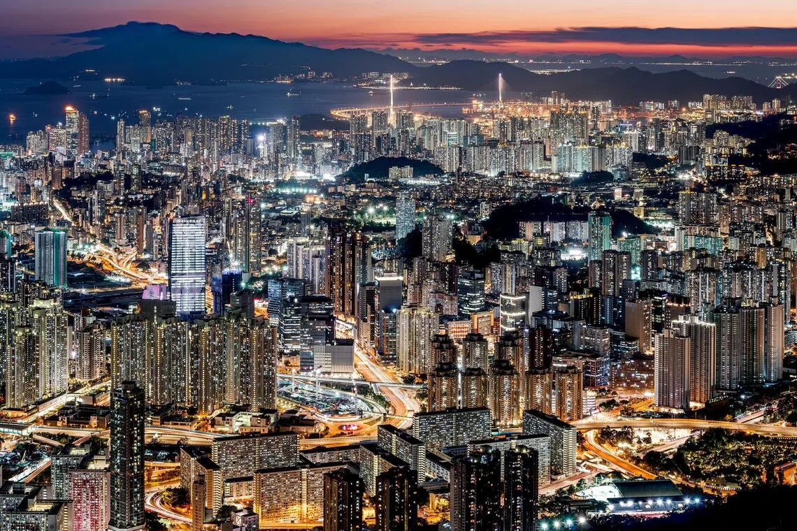 Enjoy the night-time view of Hong Kong from Kowloon Peak, an elevated viewing spot accessible by hiking.