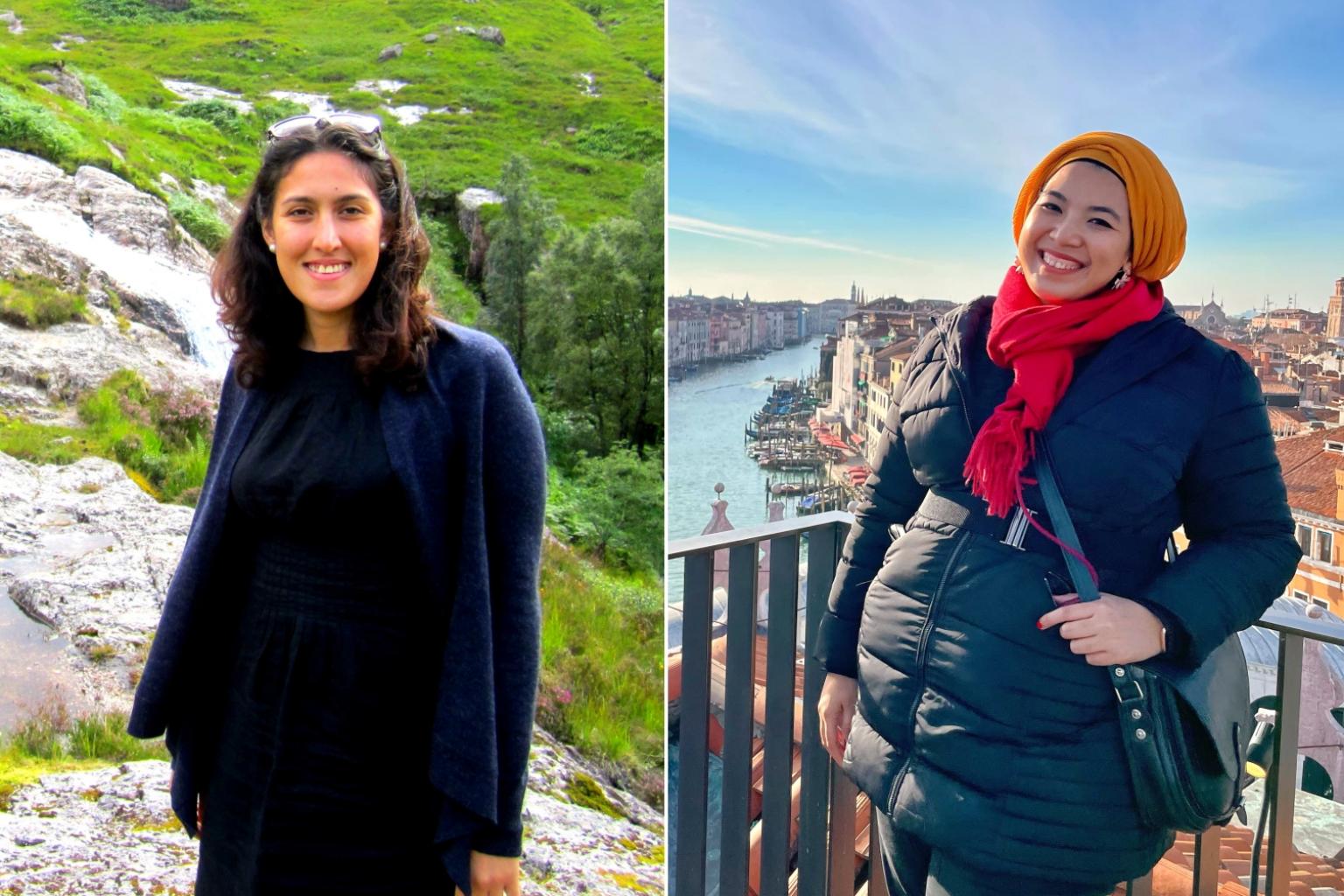 Ms Yasmine Khater in Scotland (left) and Ms Nur Atikah Mohd Zaini on her first solo trip in Venice.