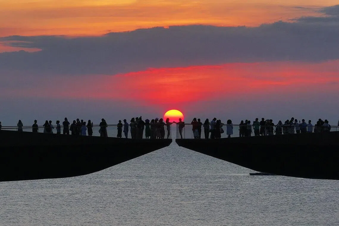 On Jan 1, the setting sun falls right in the middle of Kiss Bridge, where a 30cm gap separates the two walkways.