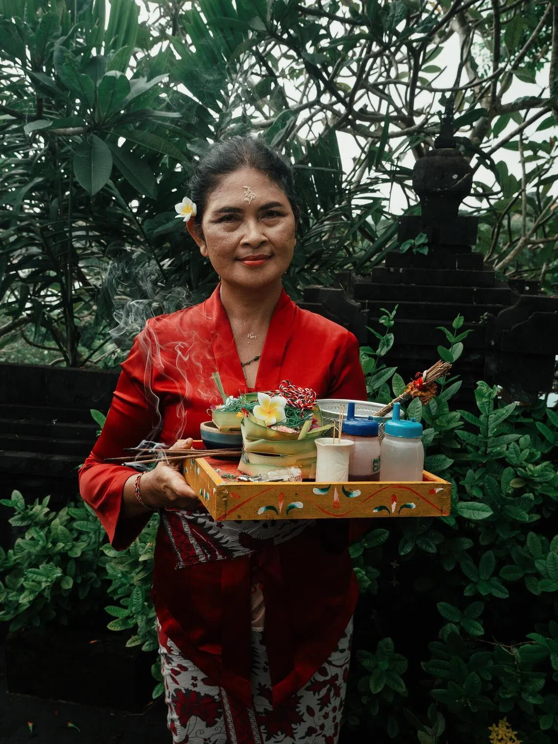 “The average Balinese household will make around 25 of these a day. We place them in home temples, the front yard and the kitchen,” Ibu Atik says. “Making them is a very meditative process. I can shut my mind off and focus on the present.”