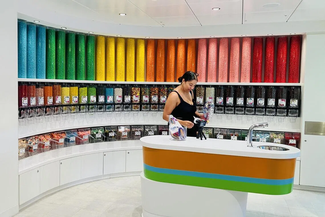 A candy store on Utopia of the Seas, which offers three- and four-night itineraries from Orlando to the Bahamas.