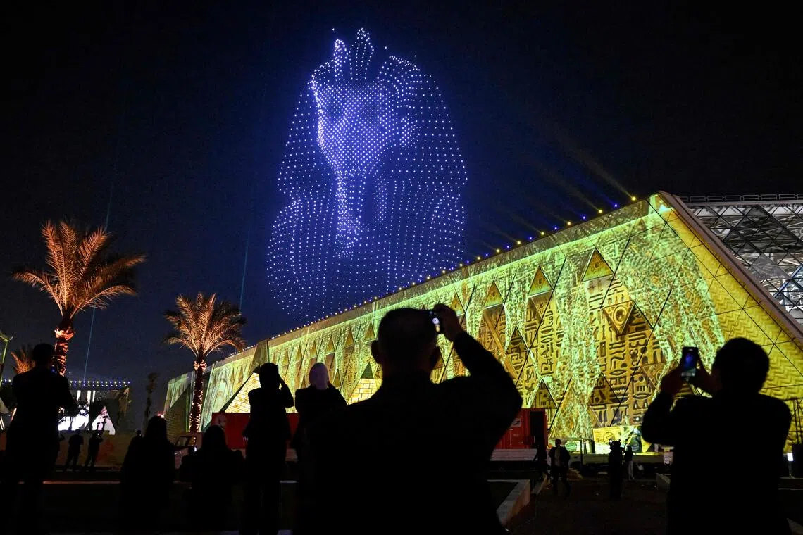 Lighting effects depicting the mask of King Tutankhamun at the opening ceremony of the Grand Egyptian Museum in Giza on Nov 1.