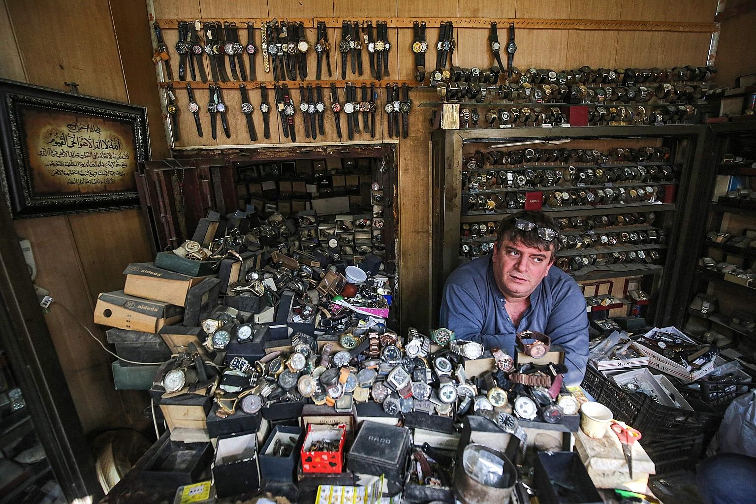 He is teaching his sons, Yehya, 24, and Mustafa, 16, to take over the business. But he insists they will preserve the store as it is, with its cracked walls framing the door, its dusty shelves and its mountains of timepieces.
