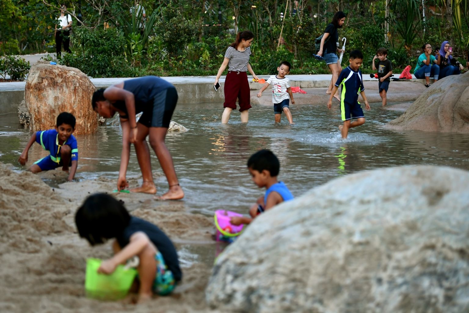 Children at the water play area of Clusia Cove at Lakeside Garden that is part of Jurong Lake Gardens, on May 4, 2019.