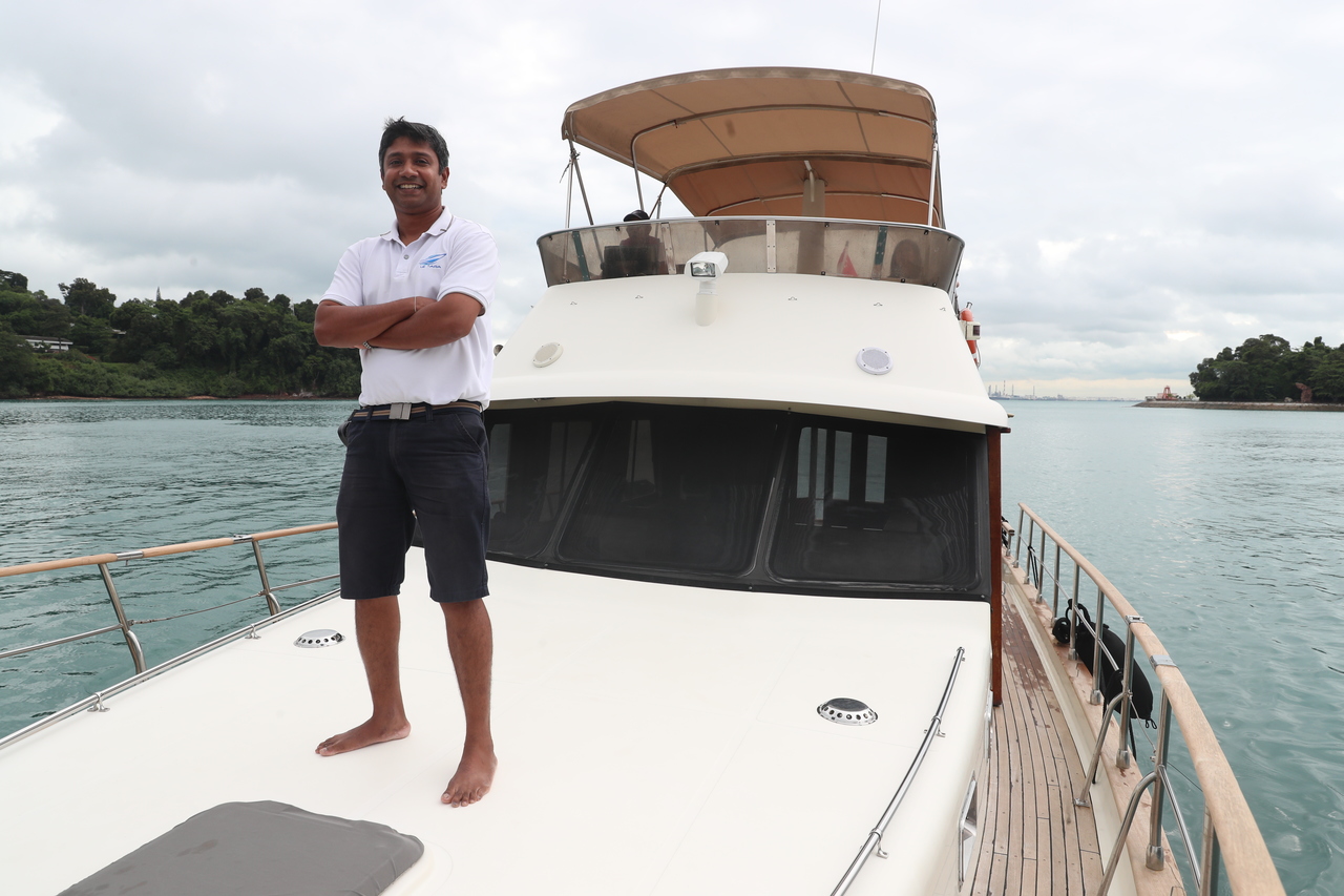 Mr Kogu Segaran on board the Le Tara, which is furnished like a cosy apartment with bedrooms, a kitchenette and a living area.