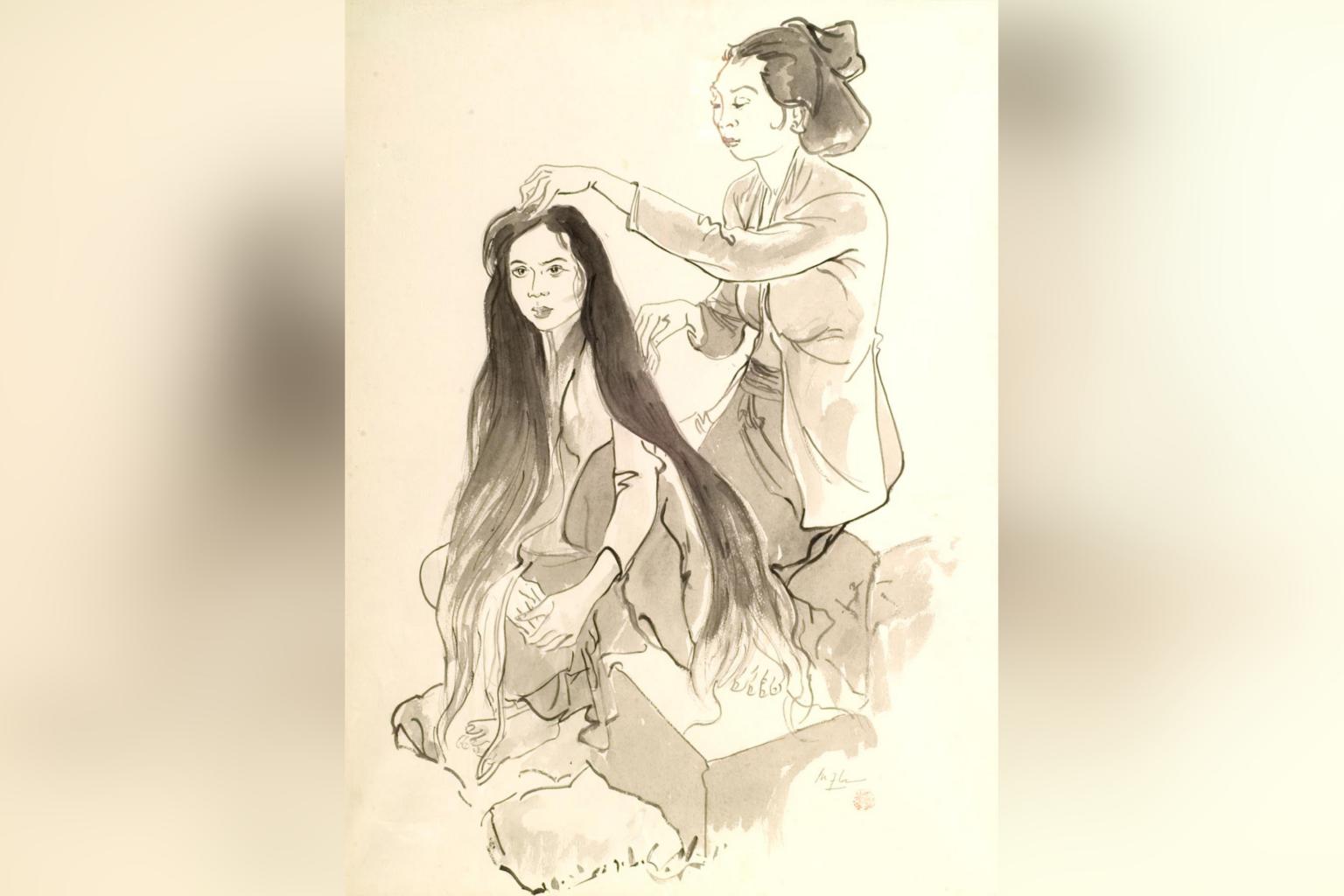 My favourite section is Ladies, which brings together some usual suspects - Cheong Soo Pieng and Lee Man Fong - with some less often seen artists. Tay Chee Toh's batik work Untitled, with its almost geometric presentation of three lolling ladies, is a standout. Look out too for Nafa alumnus and Cultural Medallion recipient Lee Hock Moh's dreamily gorgeous Fort Canning, an unusual landscape which depicts the venue in the classic Chinese ink painting style.