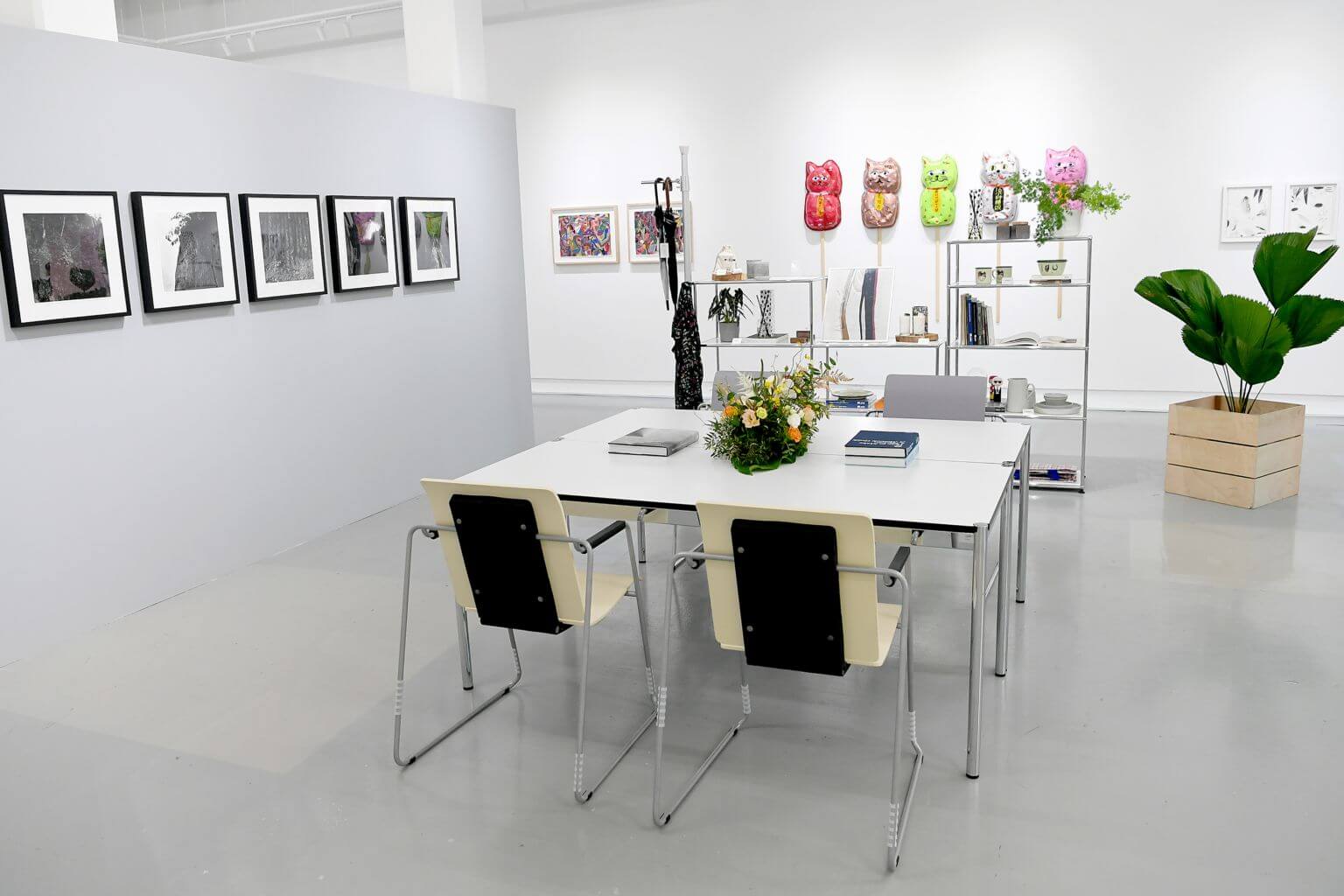 With a showroom featuring sections with the themes of fashion, home living and office spaces, the idea is to help people visualise how they can incorporate art into their daily lives. The space features furniture by homegrown brands such as Industry+, Hock Siong & Co, and Shape the Forms, alongside cat sculptures by Nobuaki Takekawa, a ring buoy by Joshua Gomes, limited edition prints, and a range of other artworks.
