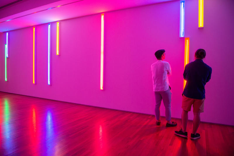 Neon Light Installations by Peter Kennedy, one of the works featured in the Minimalism: Space. Light. Object. exhibition at the National Gallery Singapore.
