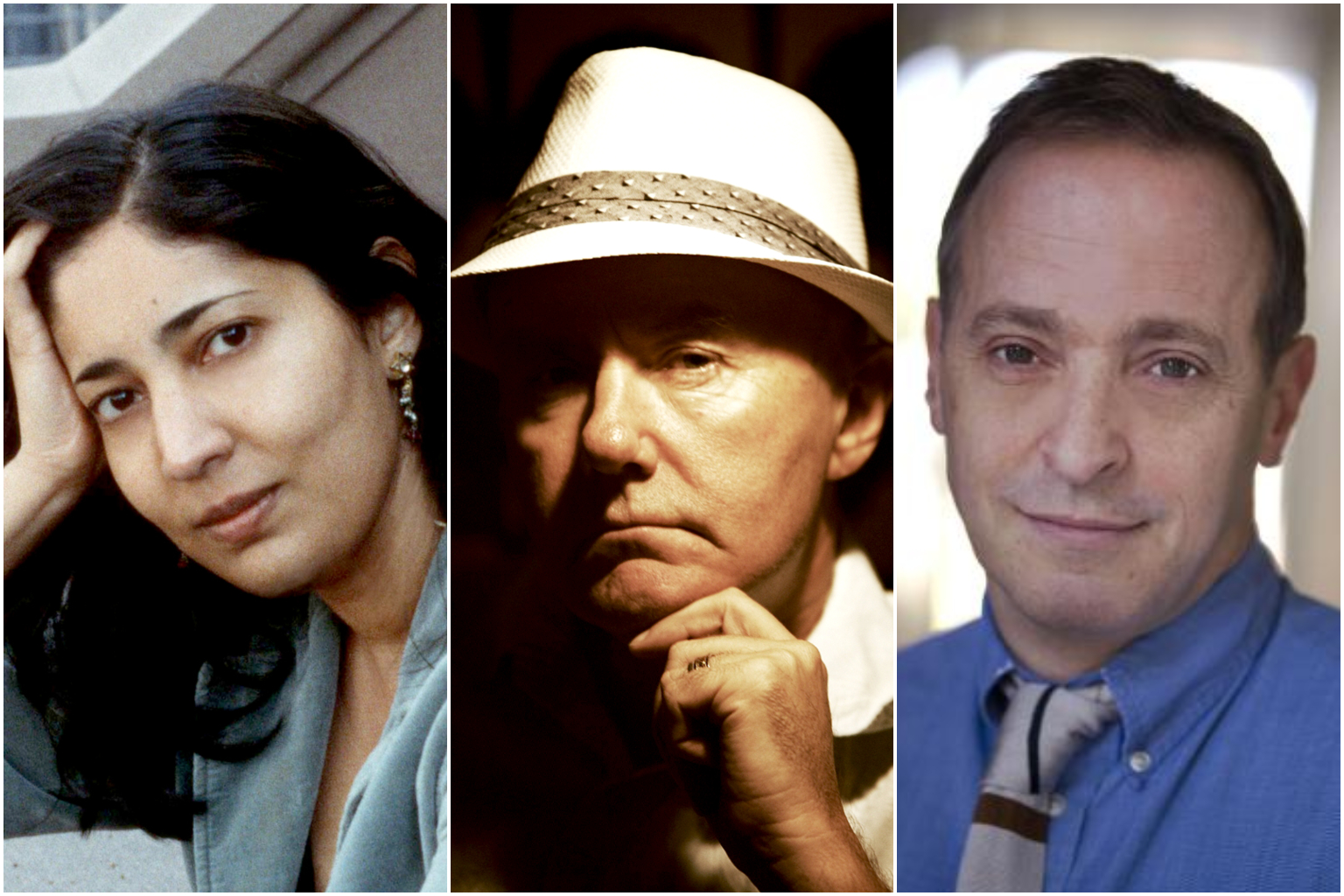 (From left) Man Booker prize-winning Indian author Kiran Desai, cult Scottish author Irvine Welsh, and American satirist David Sedaris.