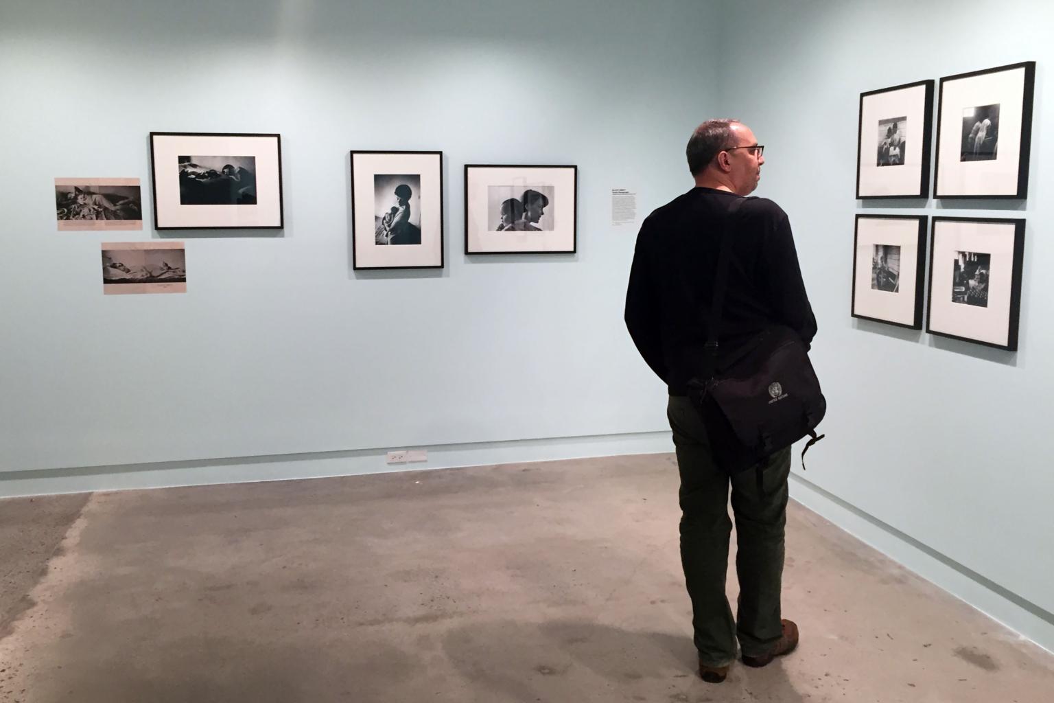 A man looks at photos in an exhibit of the 70th anniversary of photo agency Magnum at the International Centre of Photography (ICP) in New York.
