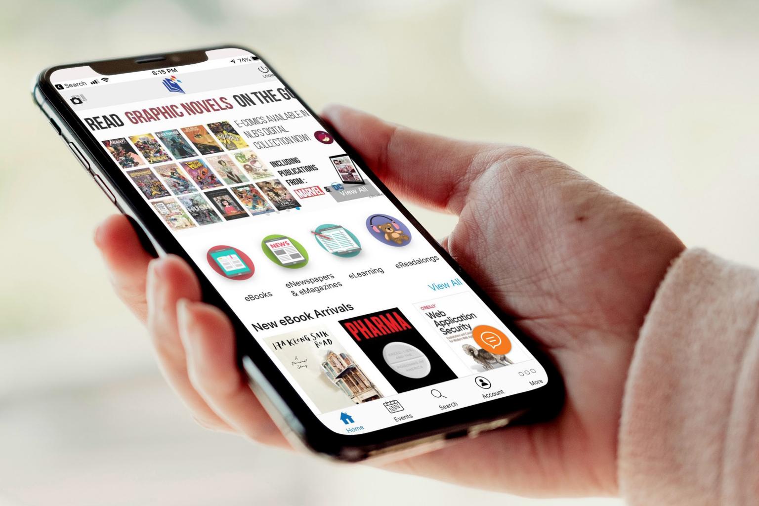 The NLB mobile app offers patrons digital resources.
