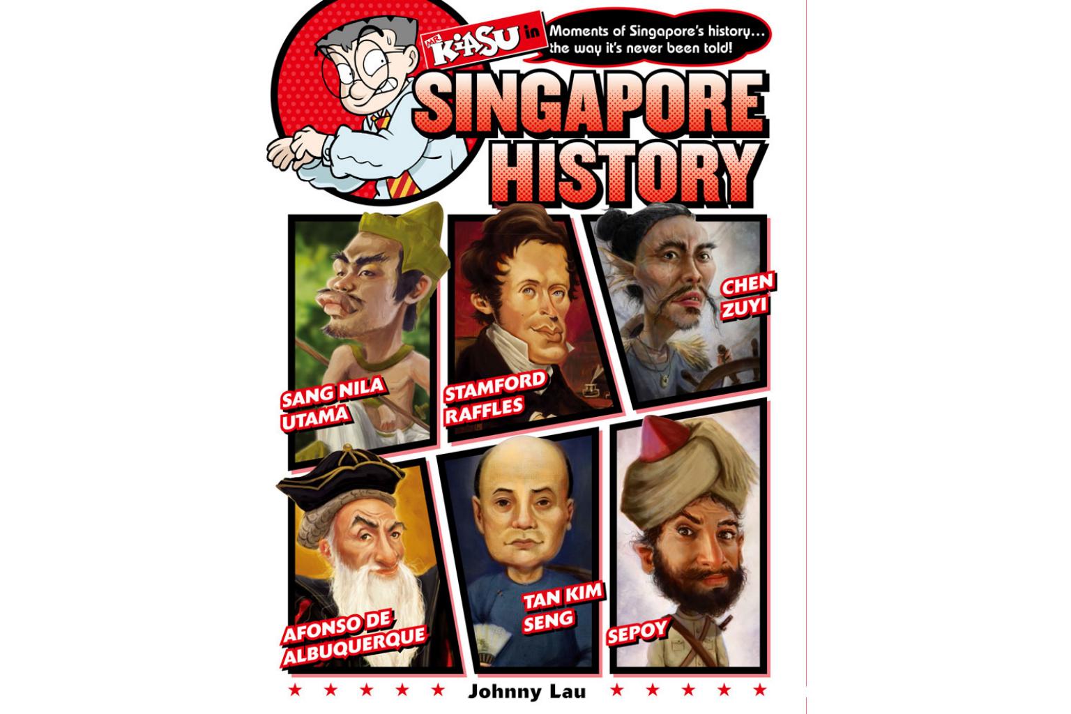 Mr Kiasu, the iconic home-grown cartoon character who is afraid to lose out, observes tumultuous events and meets characters from Singapore's history, including Sir Stamford Raffles and Sang Nila Utama, in this anthology by Lau and eight artists.