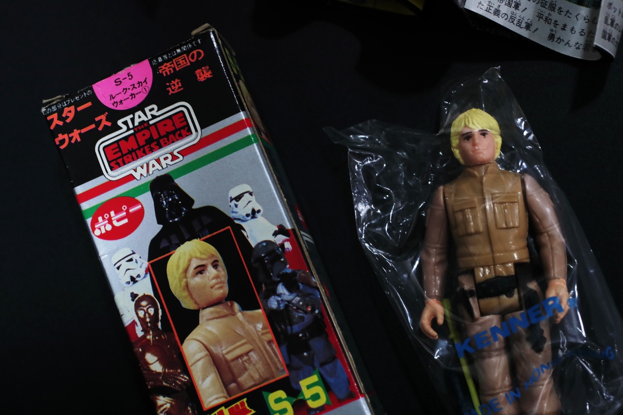 One of the most common ways of packaging Star Wars toy figures was to display a 3.75-inch toy in a blister bubble backed against a piece of cardboard. Less common are the styles created for non-United States markets - this figure of protagonist Luke Skywalker in a Bespin outfit from The Empire Strikes Back (1980) is presented in a compact box by Popy, a subsidiary of Japanese toy company Bandai.