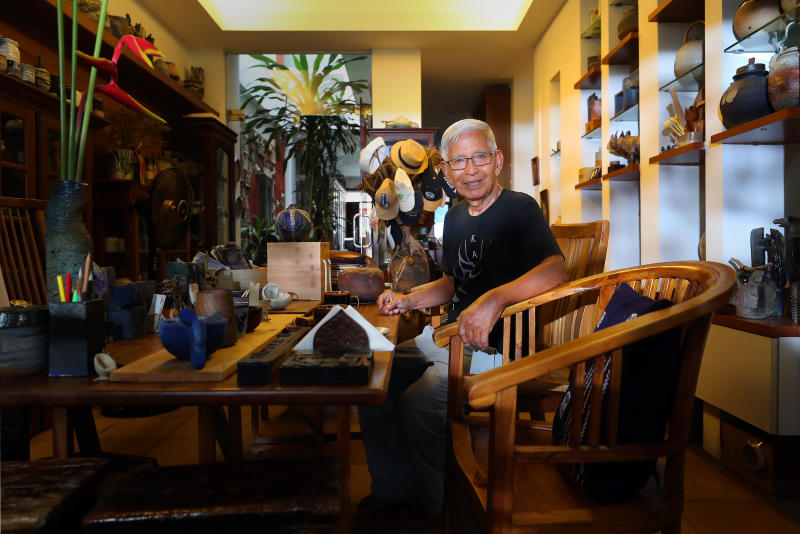 Several cupboards in his house are filled with ceramic works which he euphemistically describes as "teaching aids". One of them is a round piece by a former student who smoothened the surface with a bamboo stick.