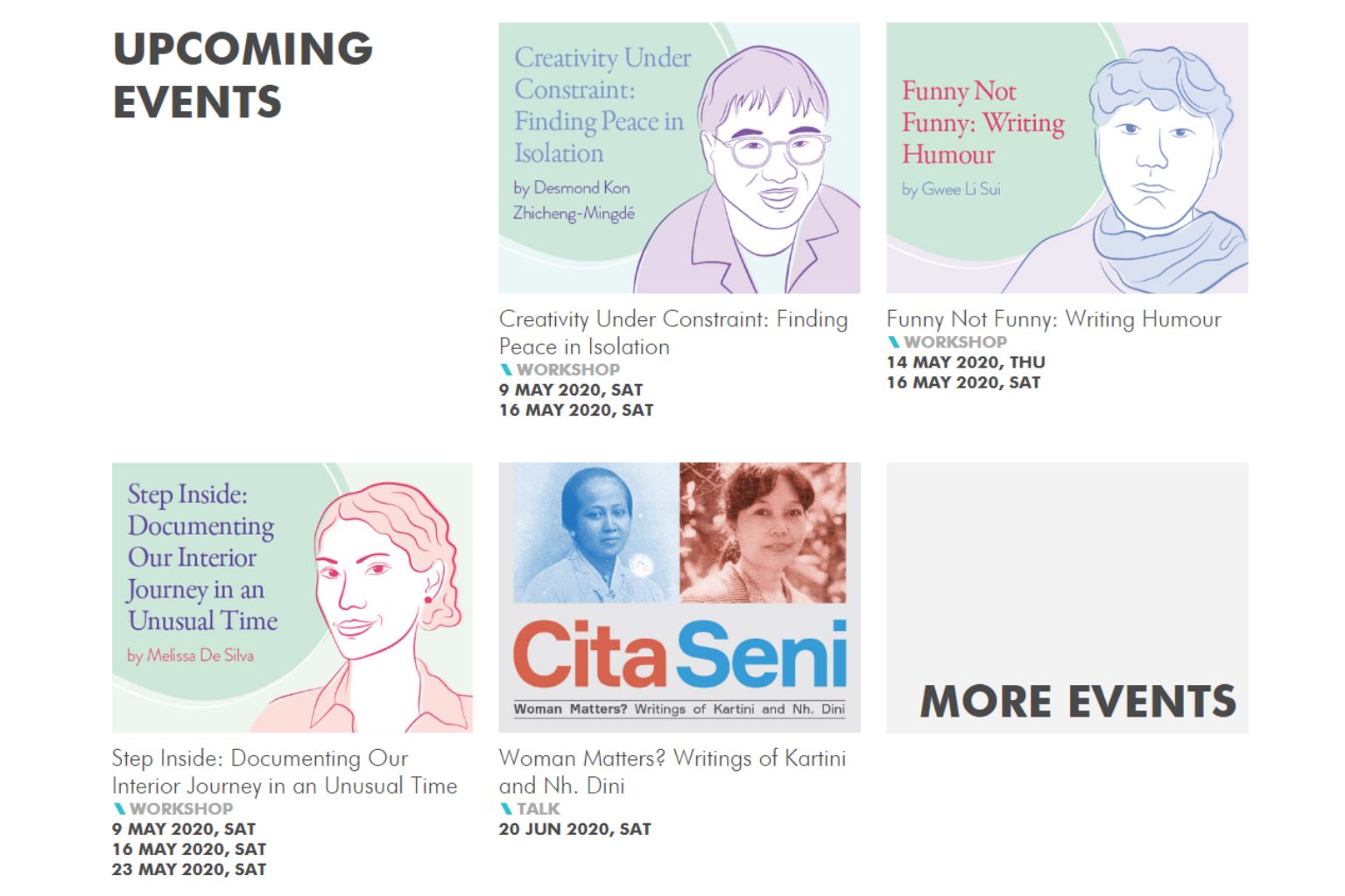 The Arts House is holding online workshops by writers Desmond Kon, Gwee Li Sui and Melissa de Silva this month.