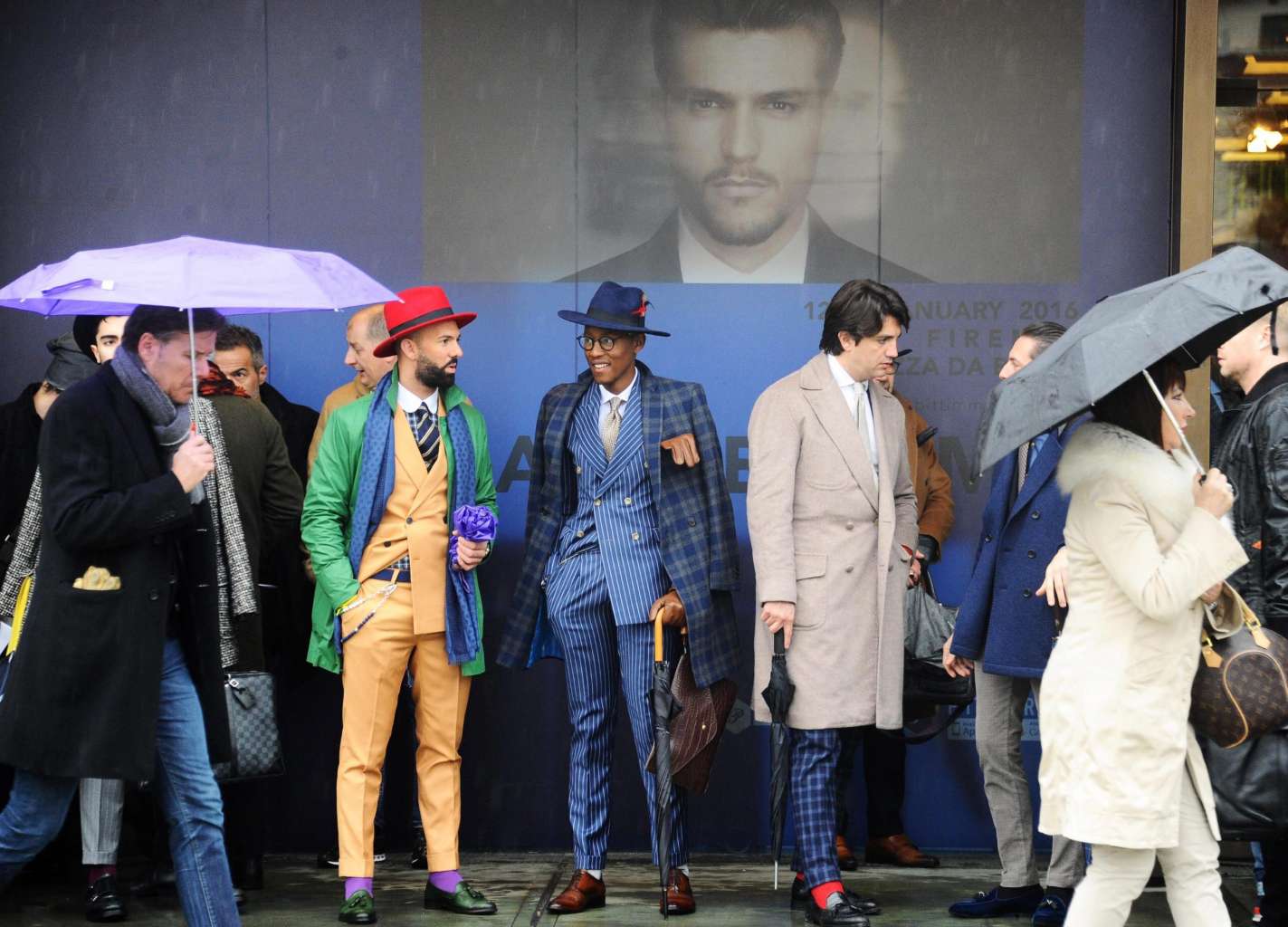 Visitors at the 89th Pitti Uomo menswear fashion event in Florence, Italy, on Jan 14.
