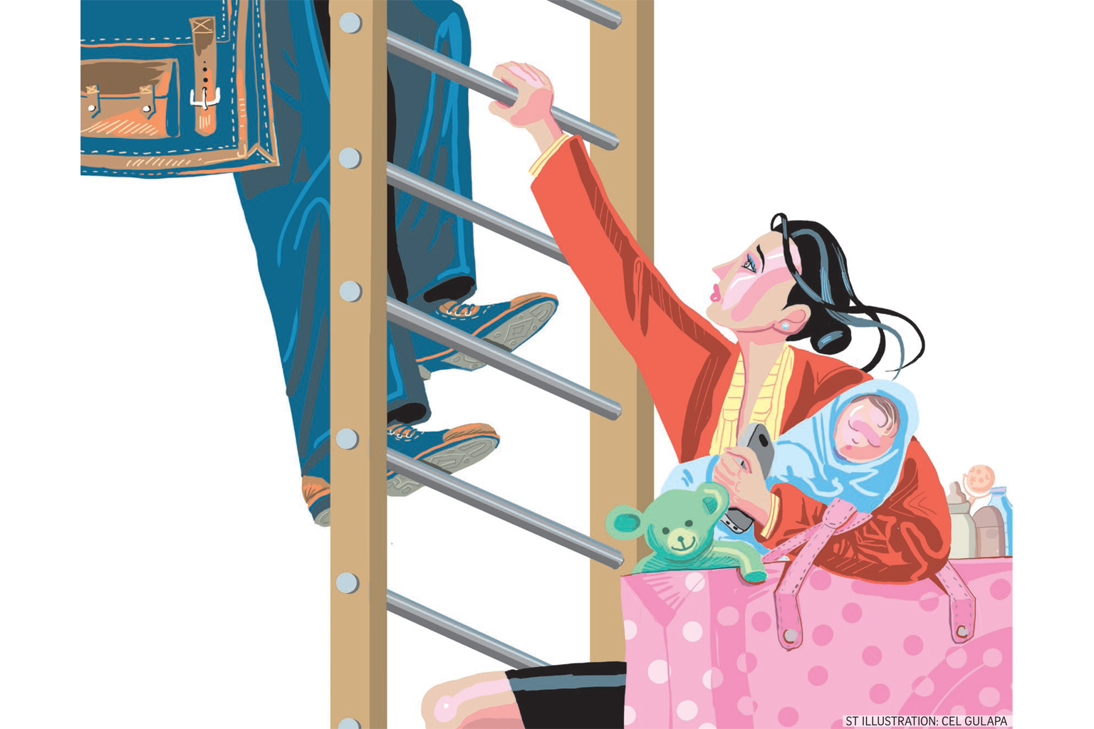 In Singapore, women, just like men, work to put food on the table and pay for household expenses. Some 61 per cent of women are in the workforce, compared with 76.5 per cent of men.