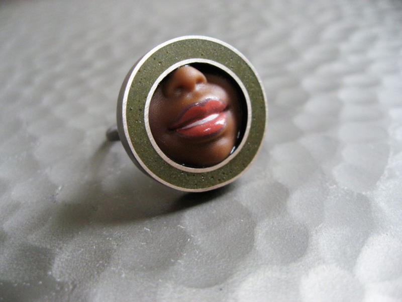 After Mattel contacted her for a Barbie collector's catalog, she made rings displaying Barbie shoes heels and then expanded her creations in the "Plastic Body Series," which she has been crafting for 20 years.