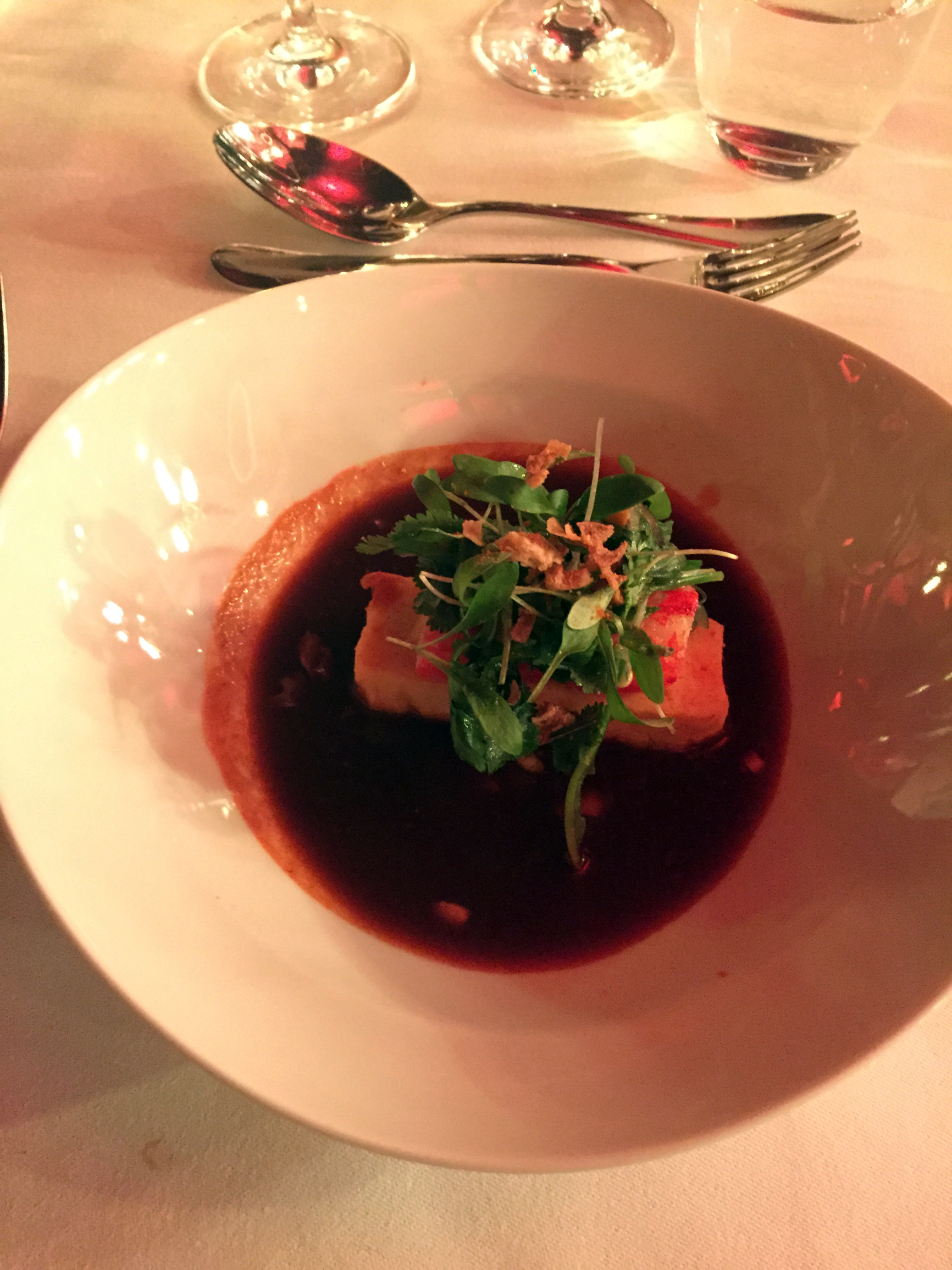 The menu includes an amuse-bouche of seafood and vegetables with "a beautiful intense glazed sauce" by Anton Schmaus (one-Michelin-starred Storstad); a play on chilli crab with king crab and spicy tomato fumé by Alexander Dressel (one-Michelin-starred Restaurant Friedrich Wilhelm); an interpretation of Indian curry with red porgy fish and papaya by Thomas Merkle (one-Michelin-starred Merkles Restaurant); and a mantou (Chinese steamed bun) dish with wasabi and carrot by Daniel Schmidthaler (one-Michelin-starred Alte Schule Furstenhagen).