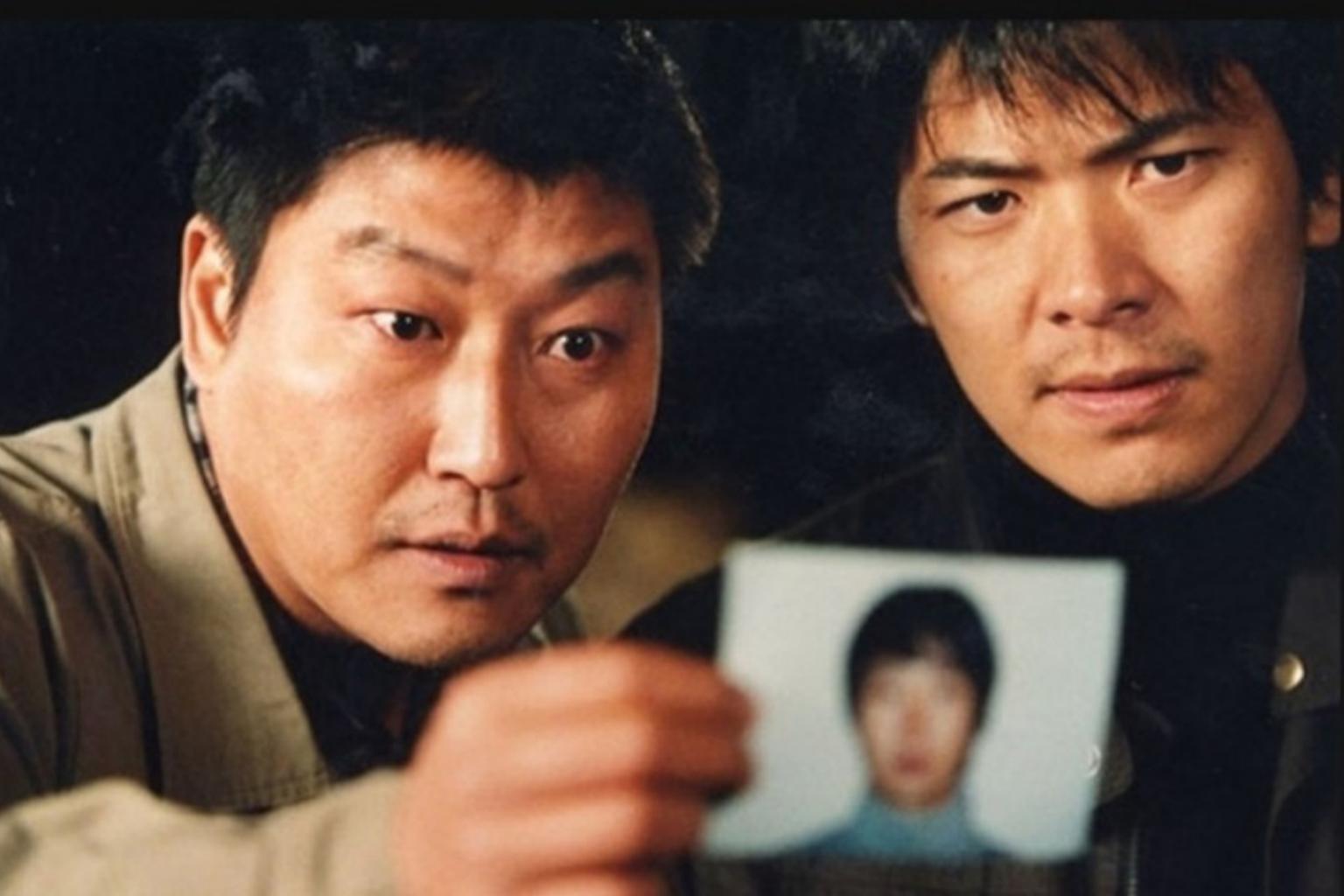 A scene from the 2003 South Korean thriller Memories of Murder, starring Bong Joon-ho (left) and Kim Sang-kyung as police officers trying to track down a serial killer on the loose.