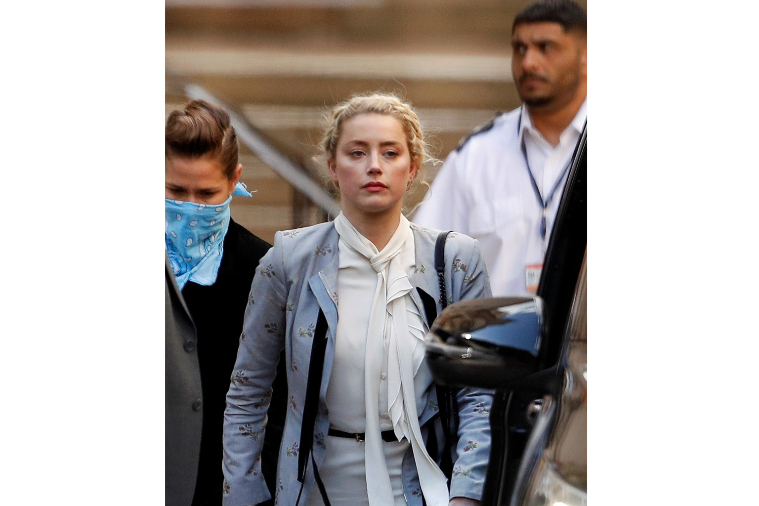 Actress Amber Heard leaving the High Court in London on Tuesday. She rejected claims that she had affairs with Tesla founder Elon Musk and actor James Franco during her marriage to ex-husband Johnny Depp.