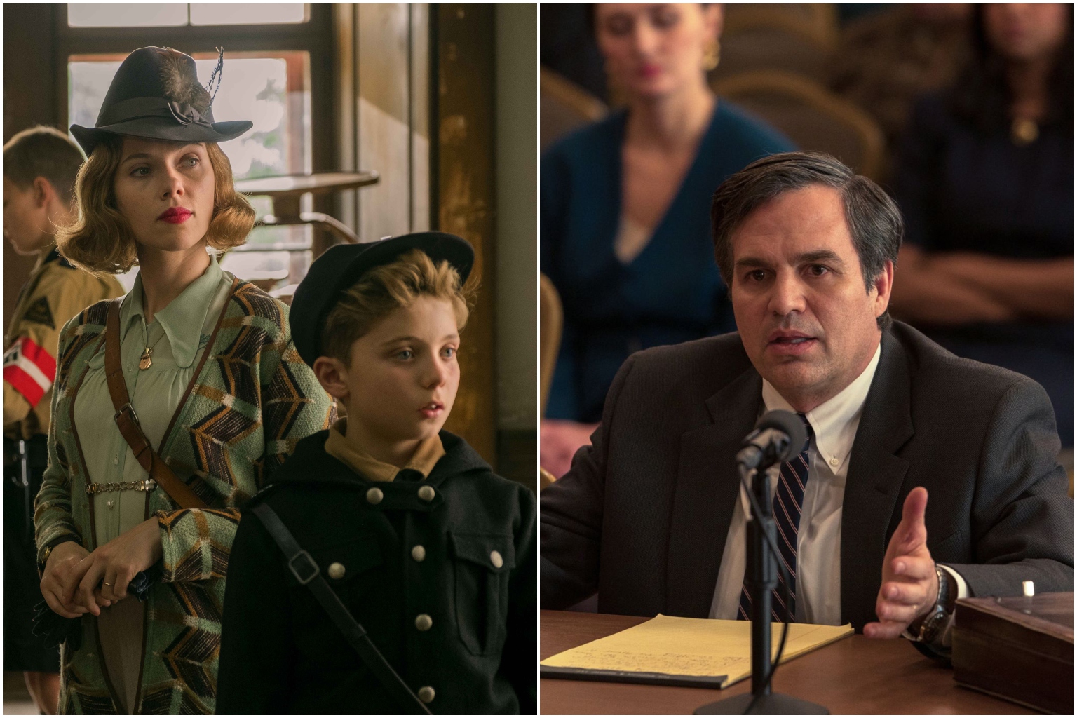 Movie stills from Jojo Rabbit (left) and Dark Waters.