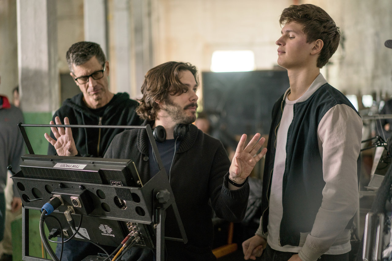 Director Edgar Wright (centre) and actor Ansel Elgort (right) on the set of the heist thriller Baby Driver. PHOTO: TRISTAR PICTURES