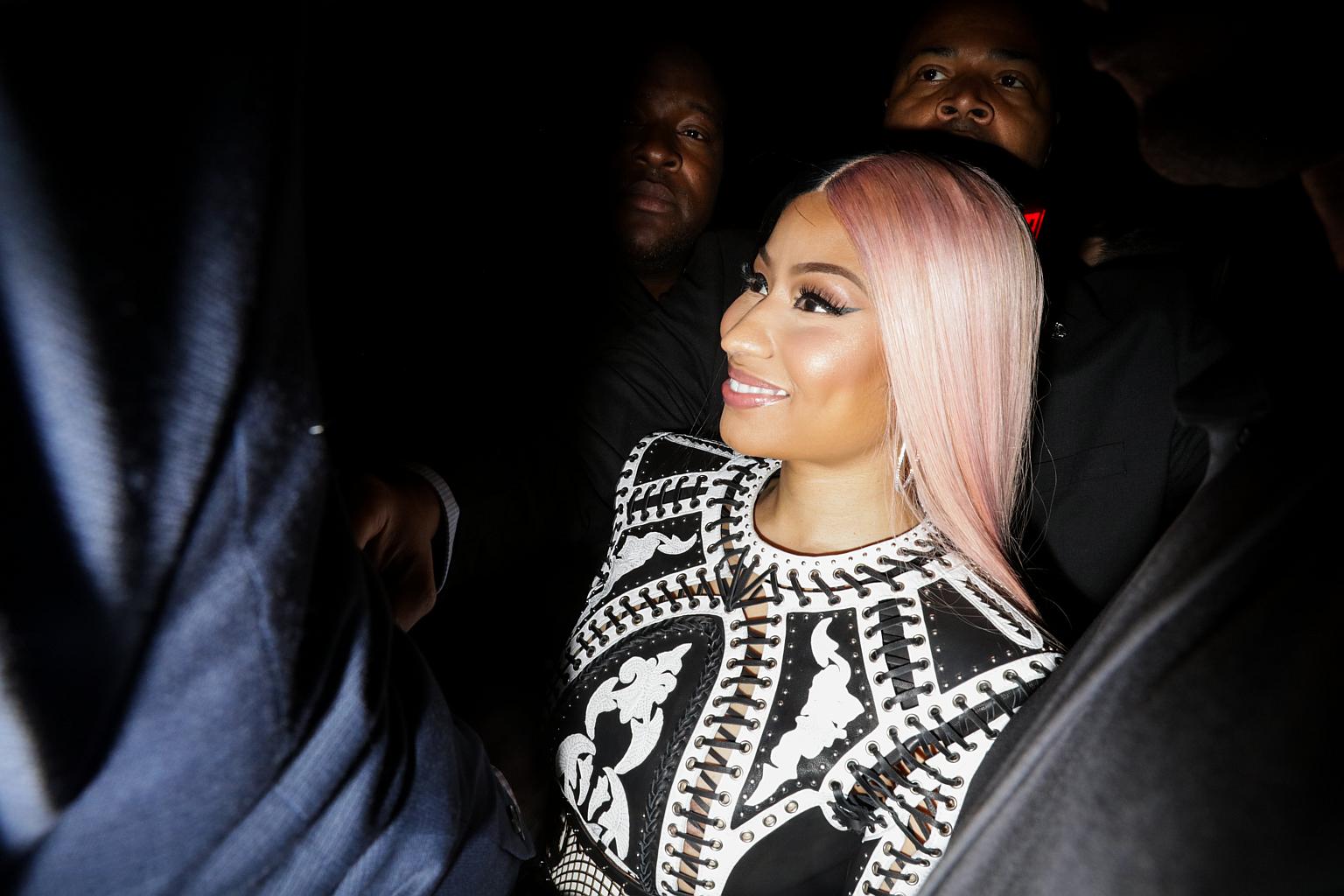 Nicki Minaj surrounded by bodyguards at a party in New York, on Sept 7, 2017.