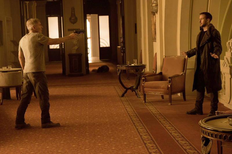Harrison Ford (left) who starred in the first Blade Runner film, faces off against Ryan Gosling in the sequel Blade Runner 2049.