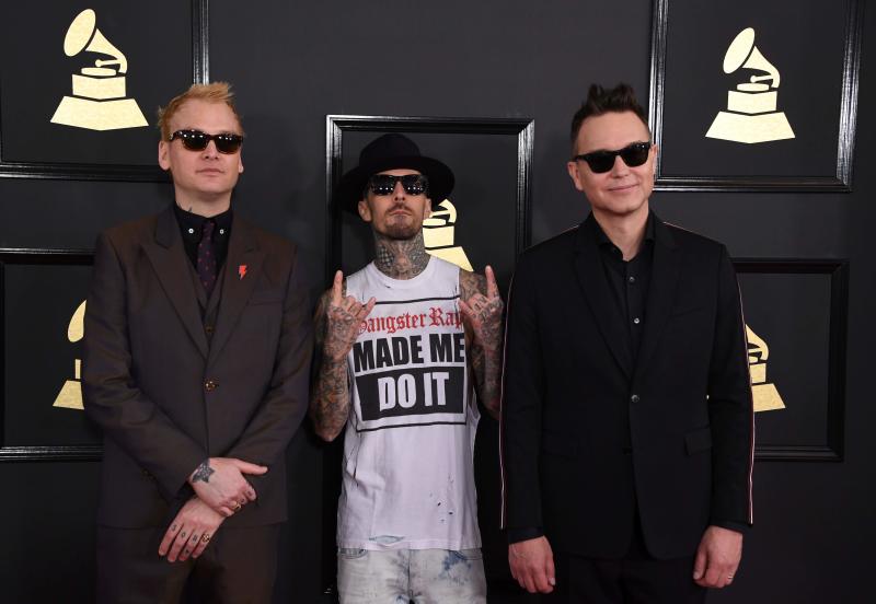 This file photo taken on Feb 12, 2017 shows Blink 182 arriving for the 59th Grammy Awards pre-telecast on in Los Angeles, California.