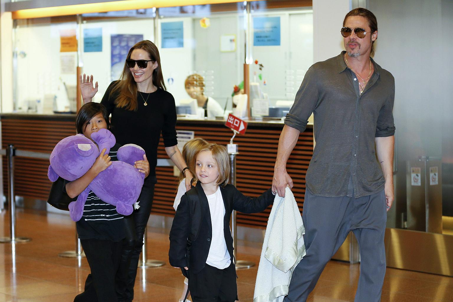 Brad Pitt and Angelina Jolie arrive in Tokyo on July 28, 2013, with their children Pax, Shiloh and Knox.