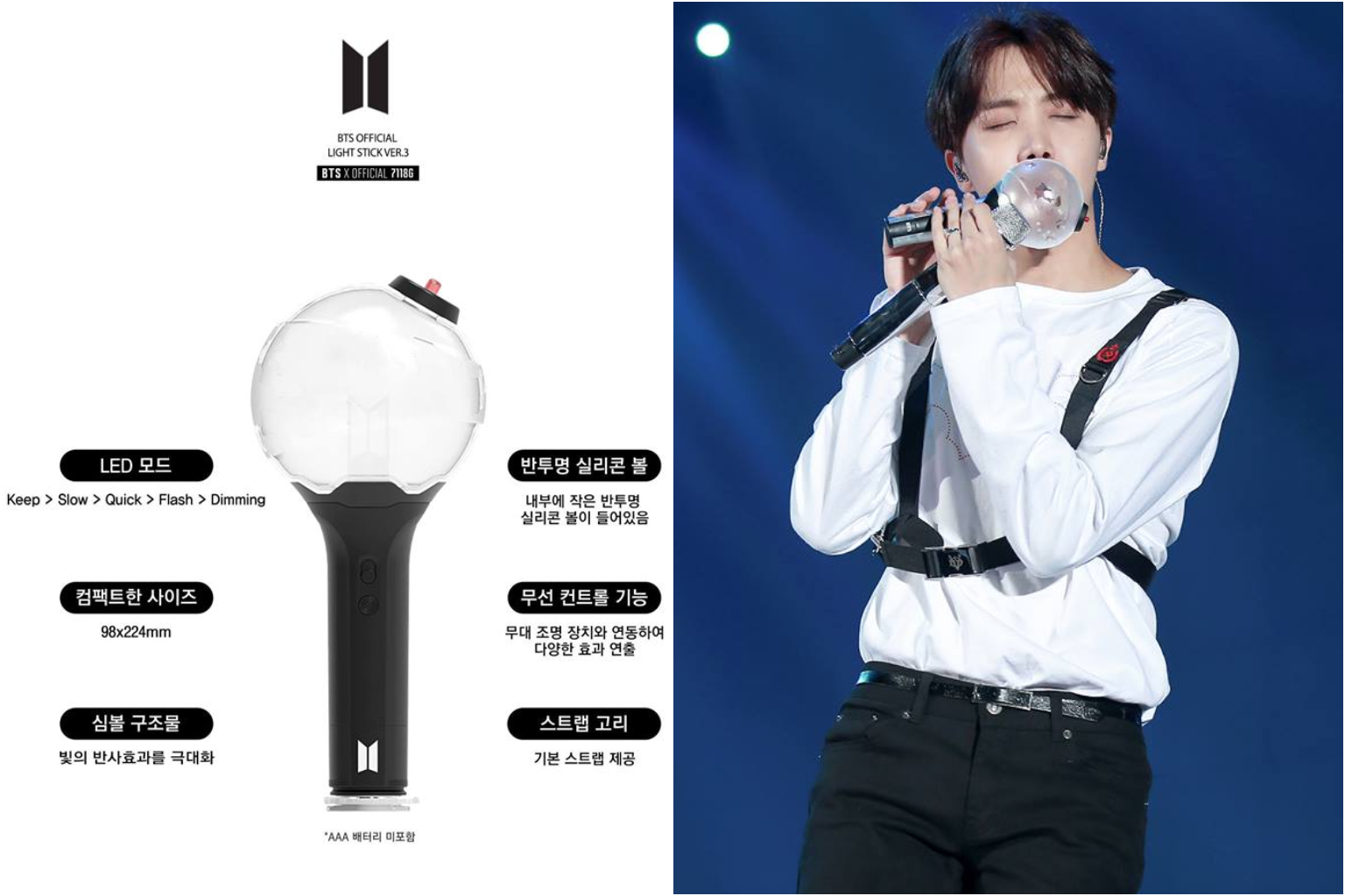 BTS' light stick has a sphere that is thought to symbolise a globe, representing the group's growing international popularity.