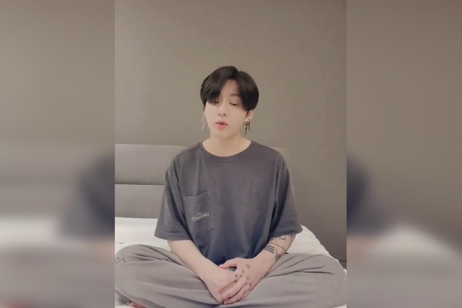 On Sunday (May 3), Jungkook posted a video of him singing American singer Lauv's song Never Not while sitting on a bed on the official Twitter account of BTS.